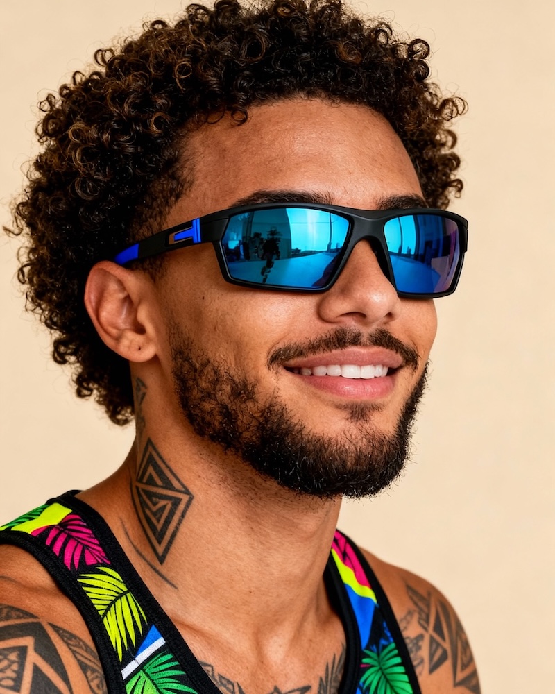 - Protection sans compromis : Les verres de haute qualité filtrent 100% des rayons UV nocifs, t’assurant une sécurité totale et une vision parfaite, que tu sois en mouvement ou en terrasse.